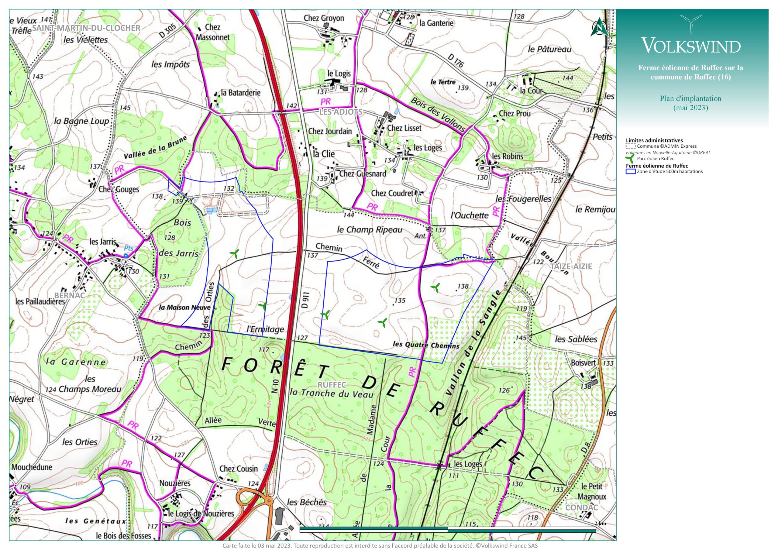 Le Conseil Municipal de Ruffec accorde le droit à la société Volkswind d'utiliser les voies communales et les autres chemins ruraux autour de la zone du projet