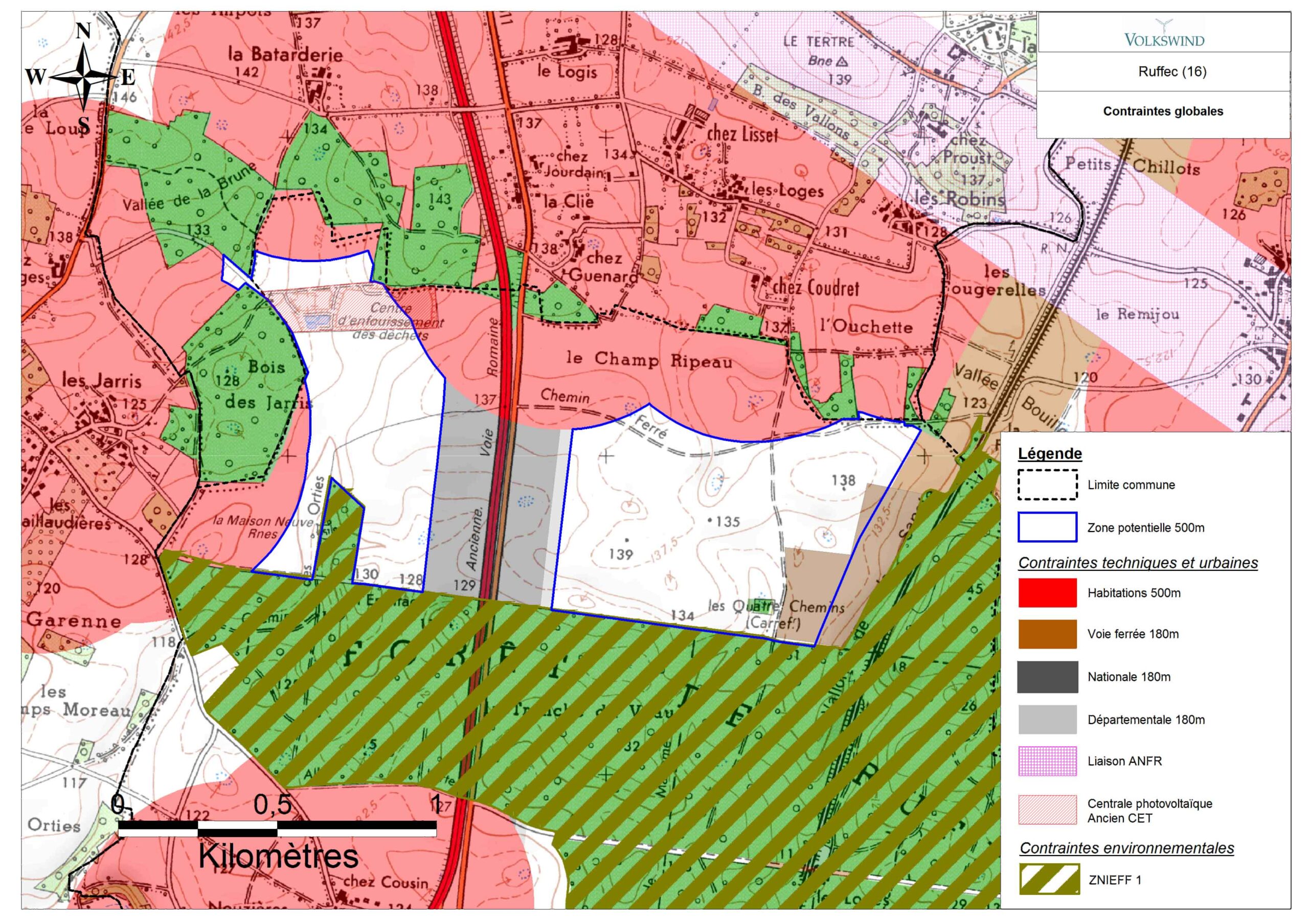 La réglementation impose un éloignement de 500 mètres des habitations, définissant ainsi une zone d’étude. Les études écologiques, paysagères et acoustiques réalisées ont permis de conclure à la faisabilité d’un projet éolien sur la zone.